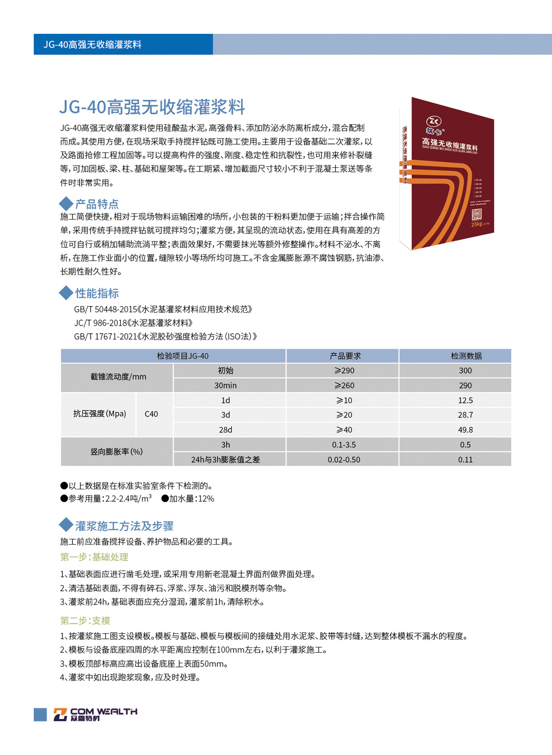 JG-40高強無收縮灌漿料